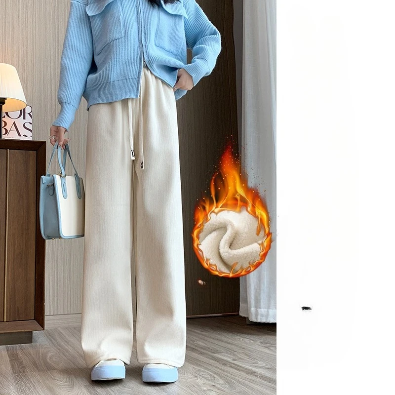 Fleece Wide-leg Pants Women's Autumn and Winter High Waist Drape Loose and Thin Corduroy Straight Mopping White Casual Pants